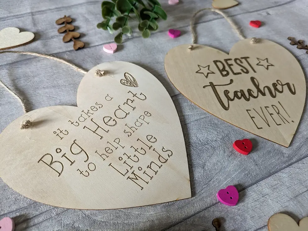 Wooden Love Heart Teacher Gift - Best Teacher Ever - Laser Engraved