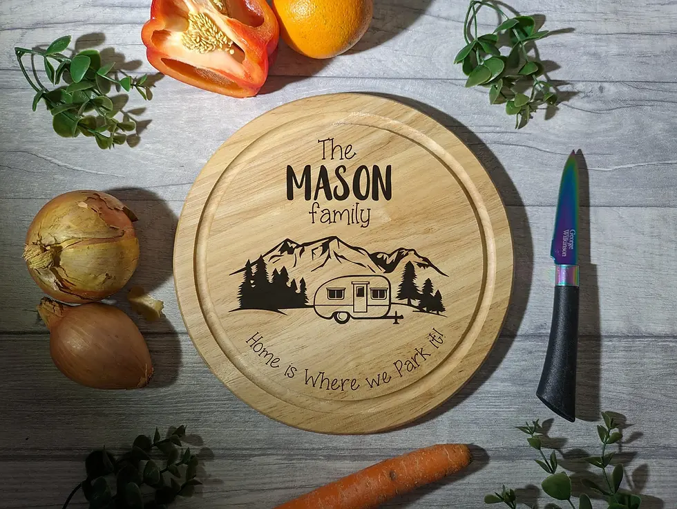 Personalised Round Wooden Chopping Board - Laser Engraved Hevea Wood Board